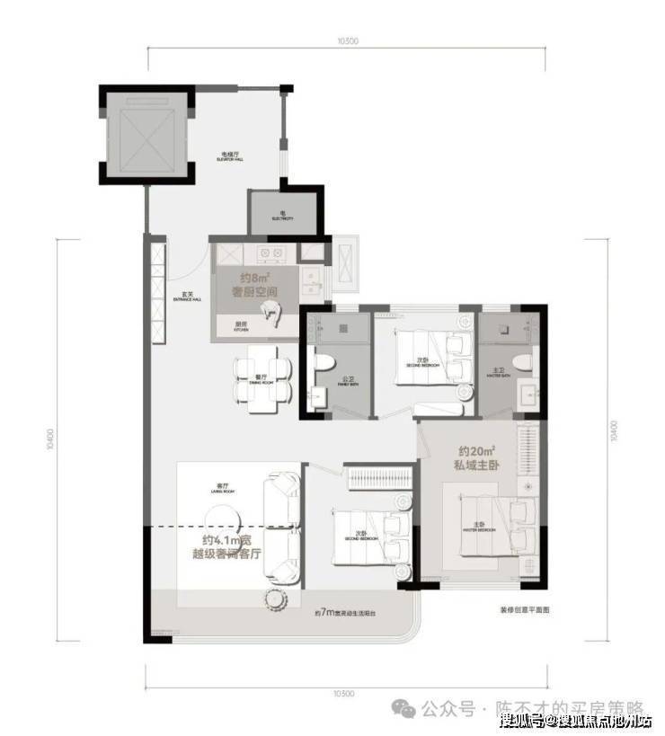 4.1米面宽客厅,20平的主卧,实际得房约101.6㎡
