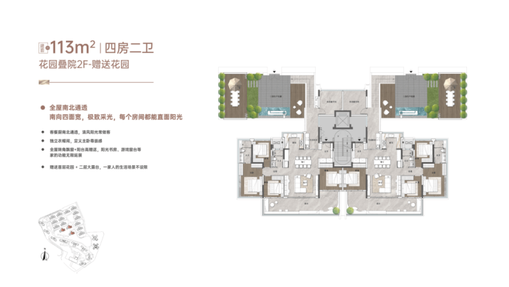 建⾯约 113-124㎡低密花园叠院