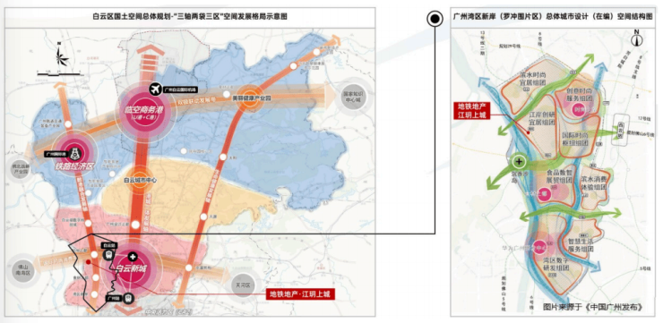 ⼴州湾区新岸,处⽩云区“三轴两带三区”规划的“数码融合发展轴”与“国际时尚消费带”交汇处,并坐享⽩云新城强劲的发展辐射与资源外溢,在⽚区总体城市设计更具前瞻性。