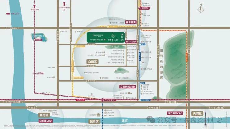 千亿级投资产业集群白云区是广州面积最大、人口最多的中心城区(数据来源:广州市统计局,信息采集时间为2025年1月),以白云新城、设计之都、嘉禾望岗TOD三大板块串联组成白云城市发展主轴,而设计之都在经济发展主轴核芯位置。