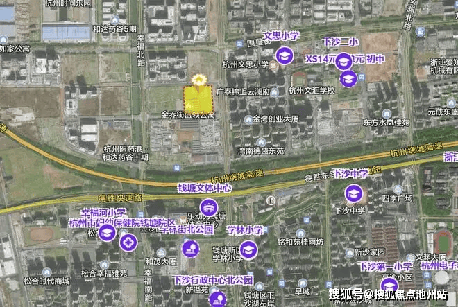 直距文思小学约500米,下沙第二小学约900米,近邻杭州实验外国语、文海湖畔中学等优质名校(期房不划分学区,以当地教育部门最终公示为准)