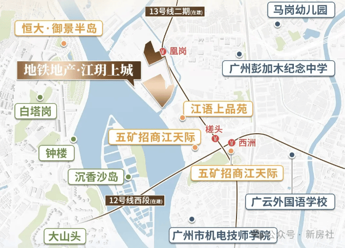 13号线二期凰岗站直接与社区无缝衔接,距离已开通的西洲换乘站也只有约800米,两条地铁线就像社区专属的交通管家。未来,项目还将建成地下通道,让业主回家更便捷,直达珠江新城无需换乘。
