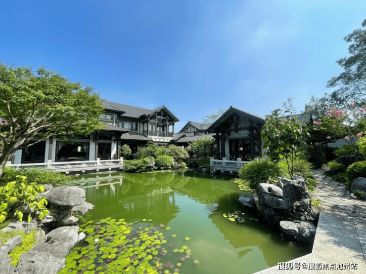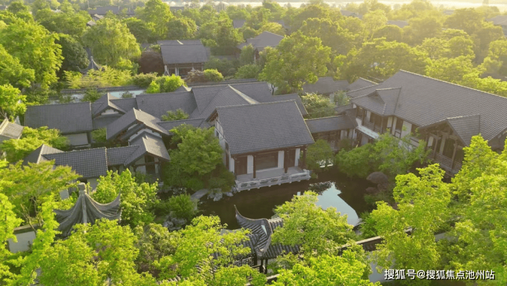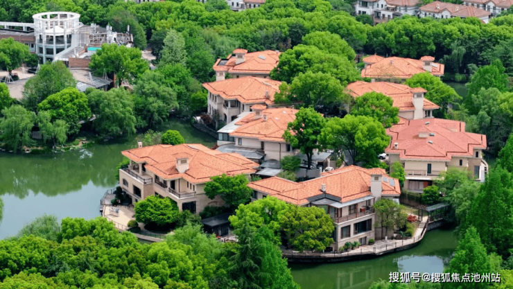 这个总占地近2700亩的项目,沿着丘陵谷地铺开,保留了原生态的溪流与植被,容积率仅0.27,既有独栋别墅的阔绰尺度,又融入了苏式园林的造景手法。