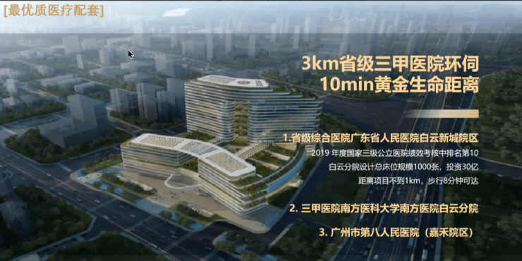 3公里,三甲医院环伺,广东省人民医院(白云新城院区)、南方医科大学南方医院、第八人民医院(嘉禾院区)等三甲医院