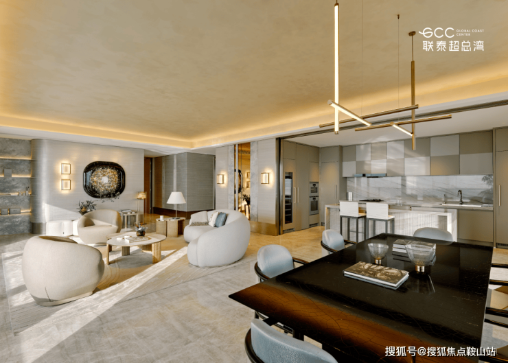 由英国皇家设计师 Kelly Hoppen 打造的 327㎡户型,以经典 “Kelly 米色美学” 为基底,融合东方禅意与西方极简,营造温润舒缓的居住氛围。270° 环幕落地窗将海景与湿地纳入室内,部分房源可享一线无遮挡海景,视野拉满。
