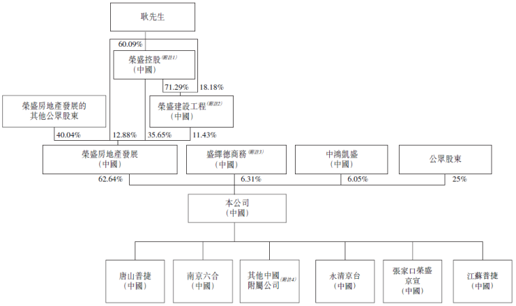此次IPO全球发售后, 荣盛房地产发展持股稀释为62.64%,盛绎德商务6.31%,中鸿凯盛稀释为6.05%。