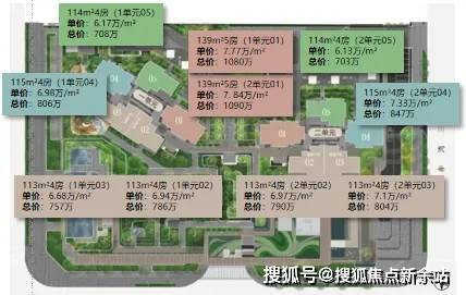 139㎡:2单元01户型(7.84万/㎡)大于1单元01户型(7.77万/㎡),价差约1000元/㎡;