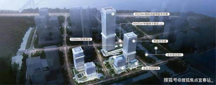 项目规划有1栋超220m地标式超甲级写字楼,刷新区域商务新高度。