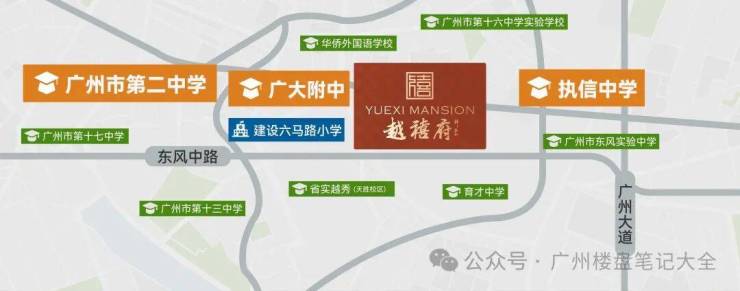 摇号对位10所中学,其中包含8所省一级学校:执信中学本部、广州二中、广大附中、广州十三中、广州十七中、省越天胜、育才中学、十六实验;1所国际化教育窗口学校:华侨外国语学校;1所广州执信教育集团学校:东风实验学校