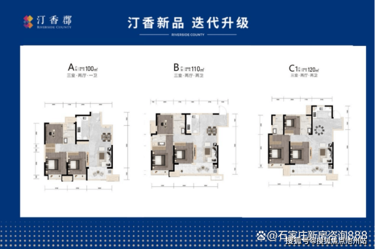 项目目前在售户型为建面约100、110和120㎡三居,三个面积段户型均采用三开间朝南格局,建面约100㎡的三居面宽达到9.3米;除此之外LDKB一体化,客厅全落地窗设计,空间合理通透。建面约110、120㎡三室,规划了市场上同面积段少见的通阳台,长度分别达6.3和6.6米,尺度感拉满。我们的精装配置一直坚守高标准,不但直饮水、新风系统、空气能热水器一应俱全,像厨房油烟灶具、卫生间的马桶、面盆也都是一线品牌。