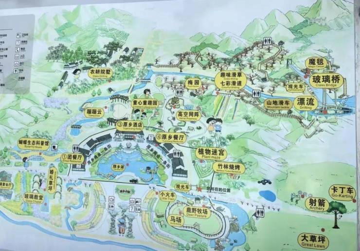 有网红TOP级的高空玻璃水滑道、288米的高空玻璃桥、草地卡丁车、滑翔等惊险刺激的项目。