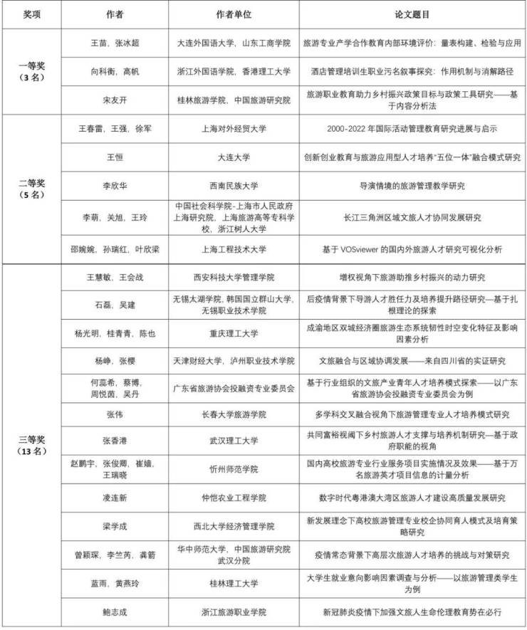 2022中国旅游科学年会优秀论文获奖名单