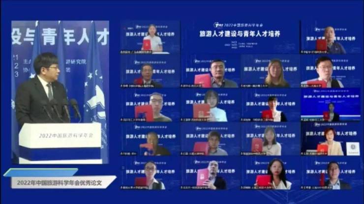 4月22日下午,在中国旅游研究院主办、携程集团协办的2022中国旅游科学年会上,年会优秀论文获奖名单揭晓。戴斌院长出席会议并和获奖代表进行了云合影。