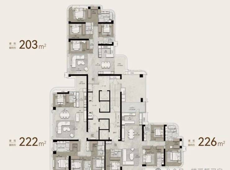 一、209㎡户型,三房三卫。