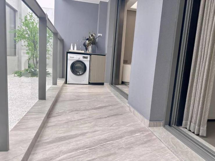 玄关柜台面,选用了雪山飞狐奢石。产地巴西。这种奢石因其独特的美丽和高质量而备受推崇,广泛用于高档家居和商业装饰中。雪山飞狐奢石以其黑白交织的纹理和均匀分布的水晶,为任何空间增添了独特的美学价值。