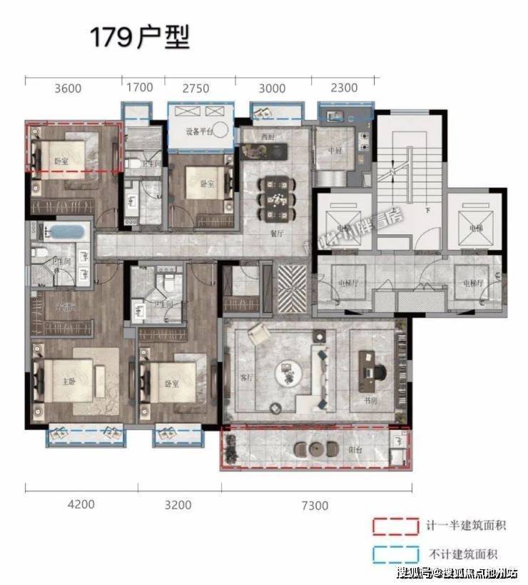 面积:主力户型 140㎡及少量220、316㎡底跃
