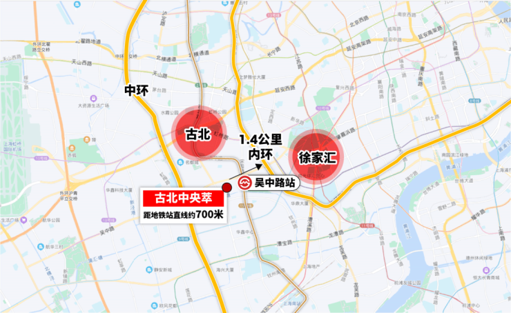 项目属于闵行中环内,同时它还是标准的地铁房,直线距离15号线吴中路站约700米,北可到古北、天山、长风,南去上海南站、华东理工、长桥、华泾、紫竹园区等。到市区各大商务区都很便捷。