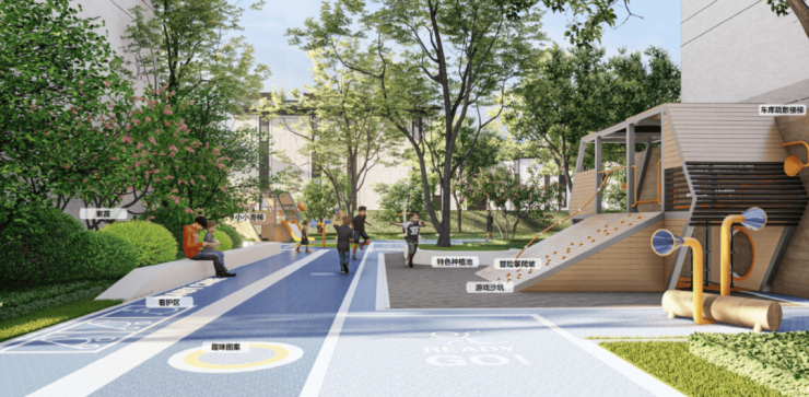 孩子可以尽情奔跑嬉戏玩耍,在欢声笑语中释放活泼天性,于时光流淌中收获童真友谊。家长们则在不远处的林下空间陪伴,给孩子们更贴心的守护。