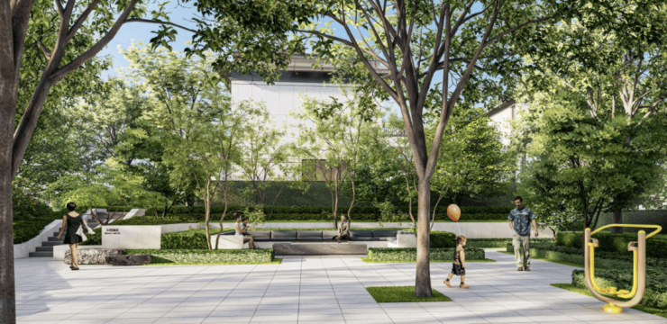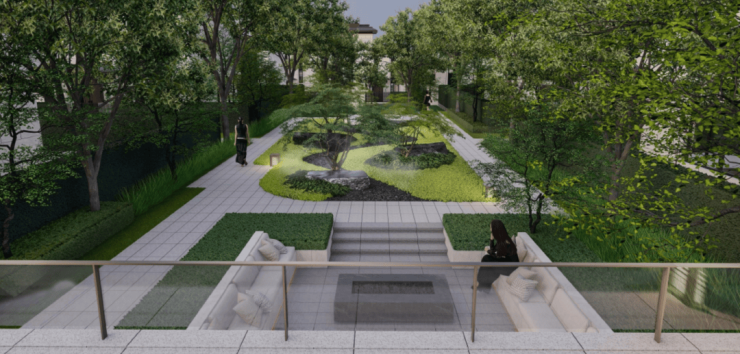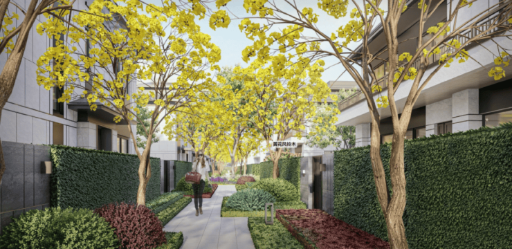 项目打造体验极致的意境生活,在静谧观景区,绿树浓荫,花木成趣,一处处诗意与绿意的交融的场景,目之所及,皆是风景。