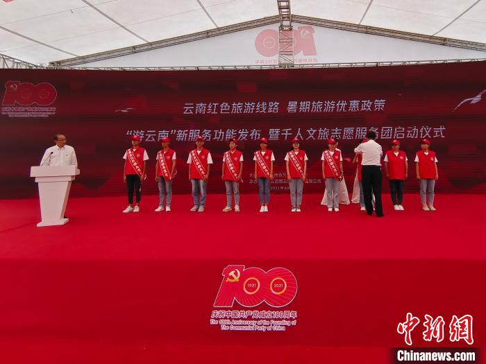 中新网昆明6月30日电 (韩帅南)30日,云南省文化和旅游厅举办云南红色旅游线路、暑期旅游优惠政策、“游云南”新服务功能发布暨千人文旅志愿服务团启动仪式,携“四份大礼”与公众见面,共同庆祝中国共产党成立100周年。