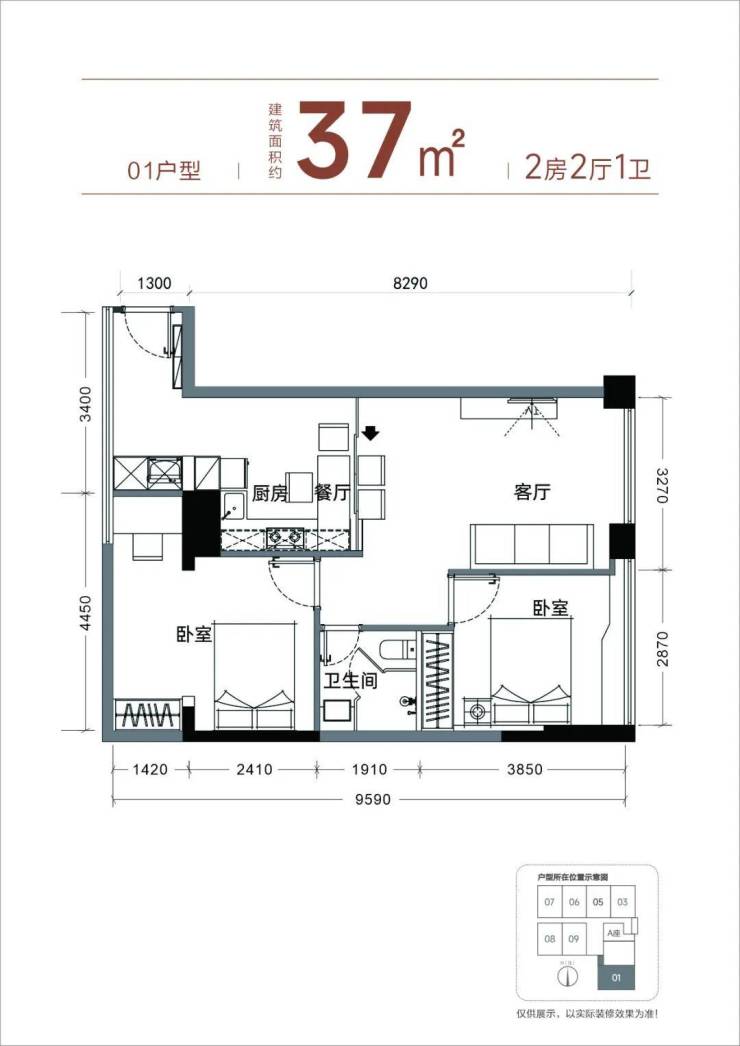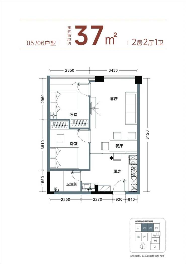 【产品面积】约37㎡小两房(实际套内使用面积接近54㎡)