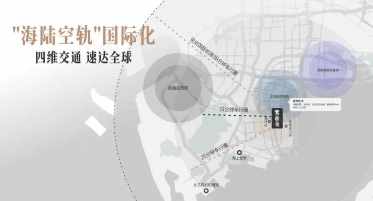 片区依托三纵四横道路交通及深圳湾关口约200米,实现深港链接;25分钟可达香港中环、香港国际机场;并且依托沿江高速可快速到达广州、珠三角等地。
