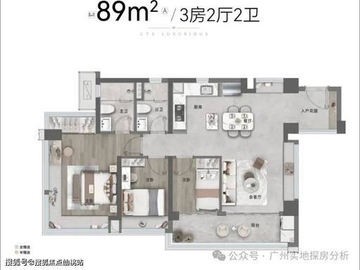 89㎡ 3 房 2 厅 2 卫|爆款主力