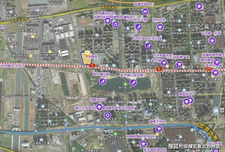 从月映金沙出发,直线距离约50米,就是地铁1号线下沙西站,真正的地铁房!