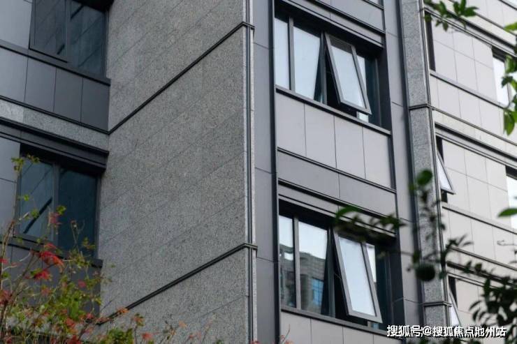 约2000吨天然“珍珠蓝”石材搭配玻璃巨幕、全落地系统窗封闭阳台、高级灰铝板、保温一体板构造国际化公建立面,履新城市天际线。