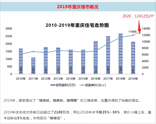 从价格来看:仅从以上的数据对比,20年比19年上涨了约9%,重庆建面接近12500元/㎡。