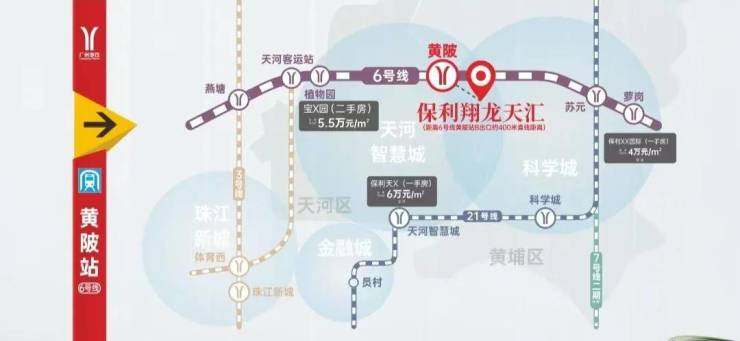 ➣地铁:项目距离6号线黄陂地铁站约400米,步行即可到达,属于步行的舒适范围。乘坐地铁1站到高塘石,6站可到天河智慧城,12站就能到达珠江新城,对于在天河智慧城和科学城工作的人群来说,地铁出行较为方便