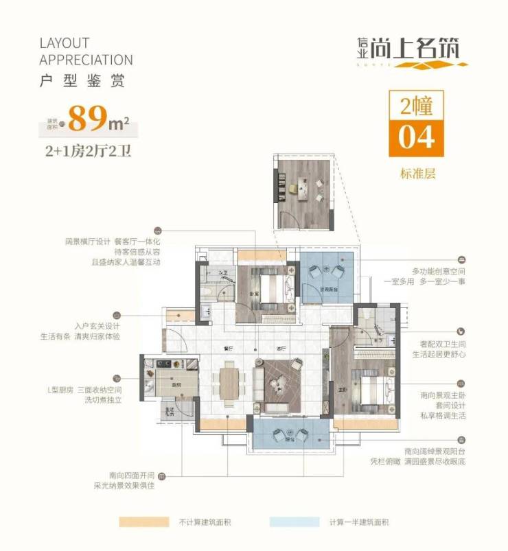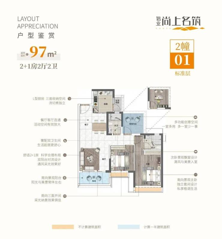 👑阔绰97㎡2+1房2厅2卫【南向景观】