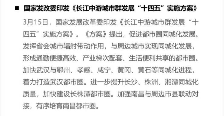 本周,国家发改委印发《长江中游城市群发展“十四五”实施方案》。在文化旅游方面《方案》提出,建设江西、湖北、湖南长征国家文化公园,发掘运用好武汉、韶山、南昌等红色资源,推进红色旅游创新发展;支持三省旅游业联动发展,联合发行旅游一卡通,共同打造精品线路,联合开展旅游市场监管。