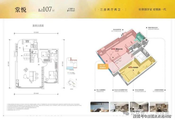 在楼层方面,107㎡中间户楼层剩余的不是很多了,边户还有一些。