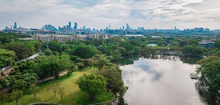 将更多的土地留给自然:尽可能保留原生山、林、湖、石,负离子含量高达3040个/cm³,是珠江新城的44倍