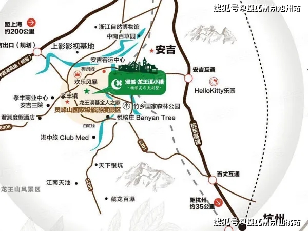 绿城·龙王溪小镇位于浙江省安吉县环灵峰山度假区内,商合杭高铁建成之后,从杭州到安吉的时间仅需15分钟。从上海到安吉坐高铁仅需55分钟,