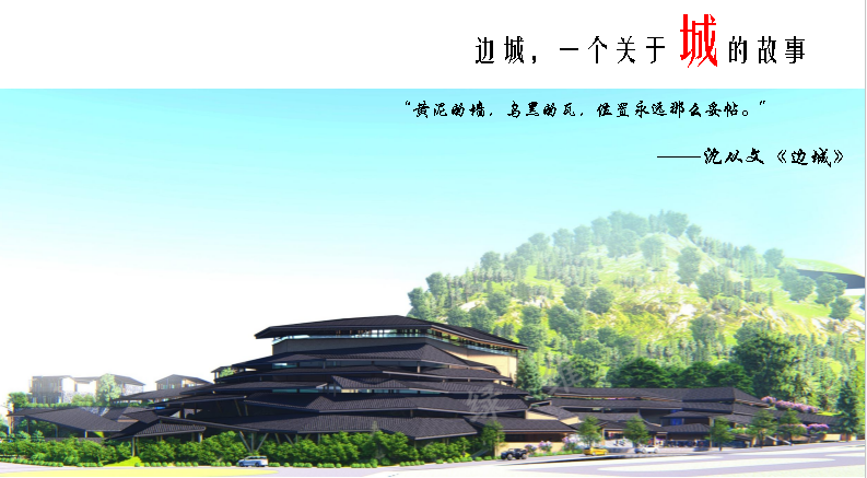 新乡土主义思考的,不是建筑对环境的适应,也不是环境对建筑的改变,而是生活在这片乡土上的人们的需求。对乡土的认识,不仅仅包括民居,还包括其他类型的建筑;不仅仅是一人一户的考量,更多的是对聚落对生活方式的思考;不仅仅是对建造形式的延续与创新,更多的是对使用空间、使用功能的处理。在对新乡土主义的实践中,设计师要判断哪些过去的原则在今天仍然是有效的。而考量的标准,则是人的需求,是乡村聚落的动态发展。我选取了两个有代表性的项目。排名前列个项目:重庆秀山洪安边城三省风情街这个项目位于三省交界地,我们称为边城,它是沈从文的小说原型地,沈从文是乡土文学的代表人物,我们从乡土文学中进入到这片场地,试图用新的设计方法,重现文学中的画面和意向,此外,还要让设计具有实用性。我们旅游设计师如何解决这些命题,正是思考这个问题的过程中,我们提出新乡土主义的理念。乡土文学是从失落和乡愁中诞生的文学,这样的状态很符合沈从文写《边城》的动机。沈从文32岁回到家乡,看到家乡的变化,由此产生乡愁,由此产生出写家乡的灵感。《边城》中描述一条溪、一个女孩、一条狗、一个漫长的梦,把他对乡愁的体现表达的酣畅淋漓。我们设计的时候也是从乡愁的角度出发,用现代手法,表达出回忆和乡愁。设计师在设计项目的时候都有情绪的基础,设计重庆秀山洪安边城三省风情街就是从这样的感情出发。我们考虑我们面临的项目,在这样的地方,有这样的文化基础,我们带着乡愁的情绪基点去做了设计。项目是“山+水+镇”肌理格局,典型的武陵山区的山水边城,一山居中——九龙山,两河环绕——清水江、洪安河。三省之地、独特文化,是一座渝湘黔交辉的古镇边城。拥有多元文化节点,包括边城文化、三省文化、红色文化、码头文化、少数民族民风民俗文化。拥有46栋历史建筑、14栋文物建筑、14处历史环境要素。