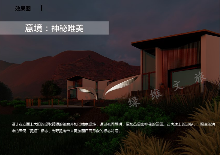 整体村落设计过程中,对于建筑空间的排布,预留旅游空间的使用,狐狸元素、草元素等的使用,做了很多细节上的设计和努力,形成了整体建筑和景观的独特体系。