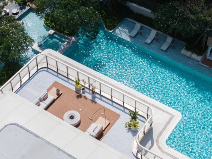 林下泳池CLUB涵盖亲子按摩池与家庭泳池,兼具社交、休憩与观景功能;池畔亭廊与休闲座区隐于热带林木之间,流水与绿植共奏度假舒缓旋律。