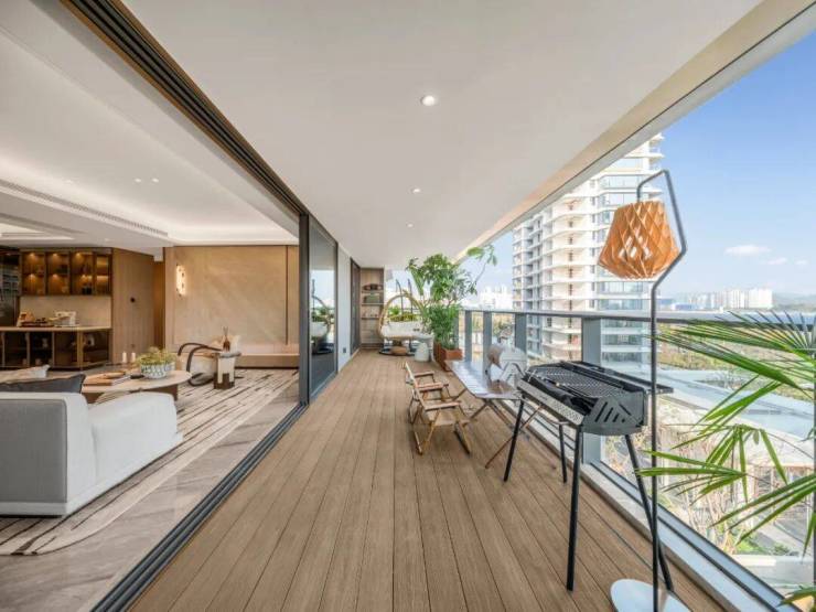 三亚招商·林屿间深研三亚气候特点,打造LDKB一体化空间格局。大落地窗与阔绰阳台引景入室,高窗墙比模糊建筑与自然的界限,让公园绿意与城市风光成为日常背景。