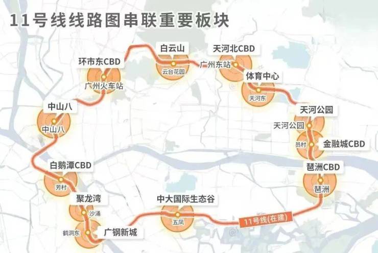 11号线是广州第一条的超级环线,市中心的“换乘之王”,直接圈定城市价值的“地段一环”。