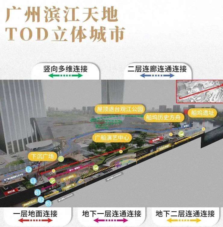 未来结合TOD的打造理念,其更将通过站点与商业步行街、中轴广场、文化中心、广船滨江公园等缝合,带来国际前沿的新生活方式。