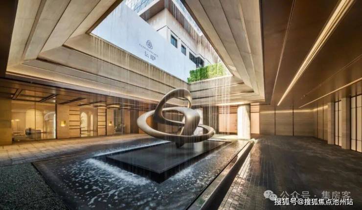 杭扇元素构建雅奢立面:沄璟文华轩的立面系统以理性建构逻辑实现艺术雅奢表达。设计溯源杭扇的“斜切角”与“折叠线”两大元素,将西方古典建筑的秩序法则与东方折扇的流动意象进行参数化转译。