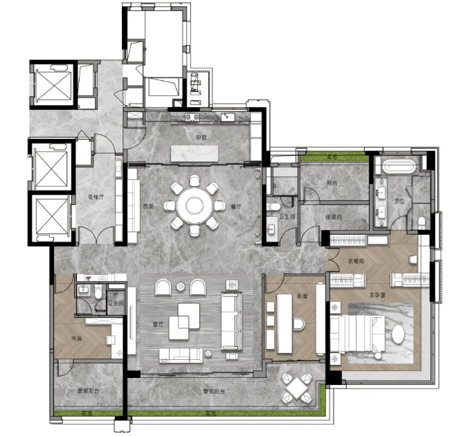 我们再来看看此次加推的268平的大面积户型,作为项目的旗舰,暗藏着哪些巧妙的设计?