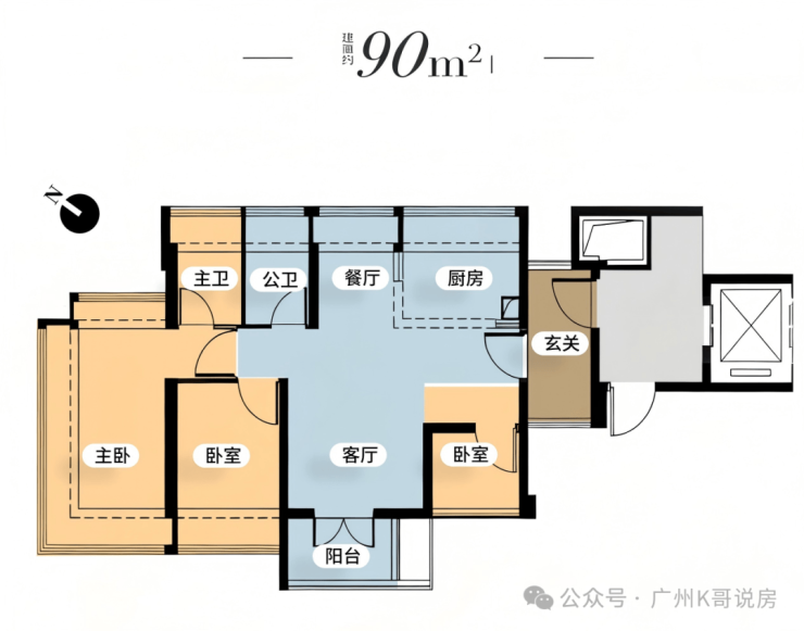 阅璟台90㎡也能做到南北对流(1栋1条梯腿),100㎡以上全部南北对流。