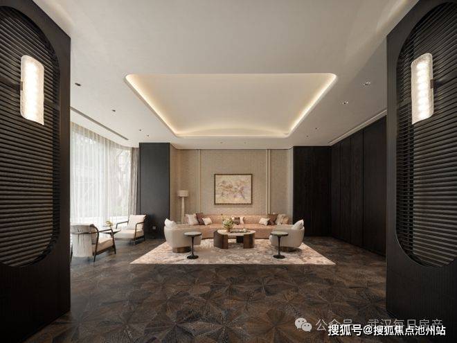 约1000㎡泛会所利用楼栋架空层打造开放式邻里空间。设置有“老钱风”的家庭娱乐休闲吧、行政酒廊、家庭艺术会客厅等,平衡商务与休闲。