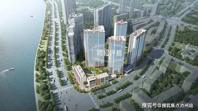 该项目一线临江,地块临江面为西面,且地块临江面很窄,住宅楼栋斜侧面对江。