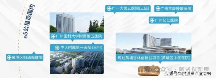 🌟家门口的国家级三甲医疗配套 全时健康守护约5公里范围内多家三甲医院环绕:黄埔区中医医院(三甲,建设中),距离项目约500米(数据来源:百度地图直线实测),打造黄埔区首个国家级中医药领域示范高地;中大附属第一医院东院区(三甲);广州医科大学附属第五医院(三甲)等。