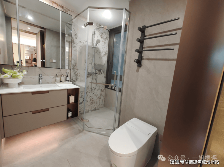 建面约115平的边套三房:分布在1号楼端头边户,3个卧室朝南,餐客厅一体全景舱设计,带独立电梯前室。