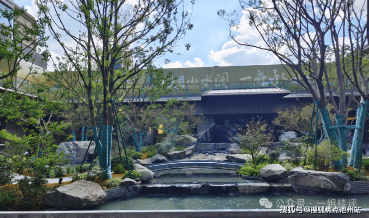 该项目也是武汉城建今年的四小龙之一,主打新中式风格,从目前的实景示范区来看,阔气大门、下沉庭院、会所等四代住宅的配置都有。